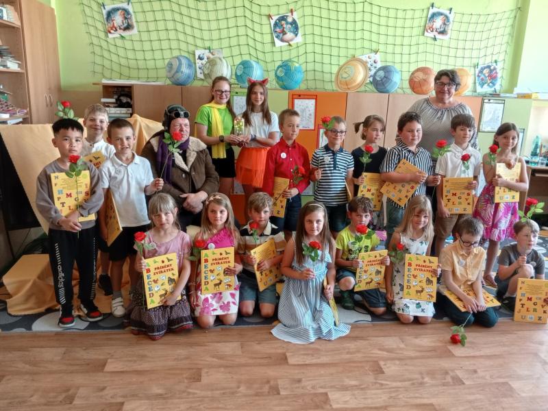 Děti se setkaly s pilotem, liškou i malým princem. Přečetly úryvek z knihy Antoine de Saint-Exupéryho „Malý princ“. Od lišky dostaly odznak čtenáře, princ dal každému tu „jejich“ růži a pilot předal knihu s věnováním. Citáty z knihy vhodně doplňovaly slavnostní atmosféru. Na závěr bylo pro děti a rodiče připraveno malé občerstvení. Děkujeme děvčatům ze sedmého ročníku za pomoc a skvělé herecké výkony, rodičům a paní ředitelce, že přišli podpořit děti a také všem ostatním, kteří se na přípravě podíleli.